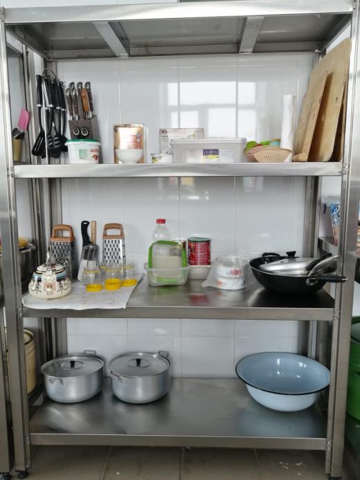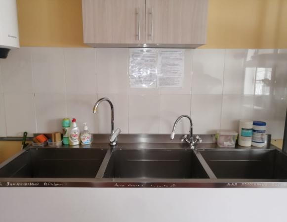 Асхана бөлмесі: (2) плита, (1) ет машинасы, көкеністер кесетін құрылғы, картоп тазалағыш, 2-темір стол, тамақ тарататын стол, (2) темір стелаж, (2) салқындататын шкаф, (2) тоңазытқыш, электронды таразы, су жылытқыш, сорғы(вытяжка).